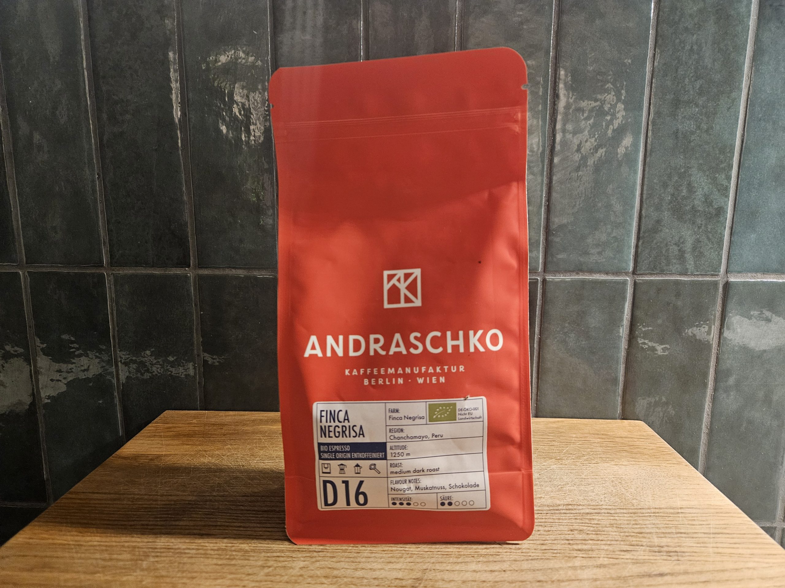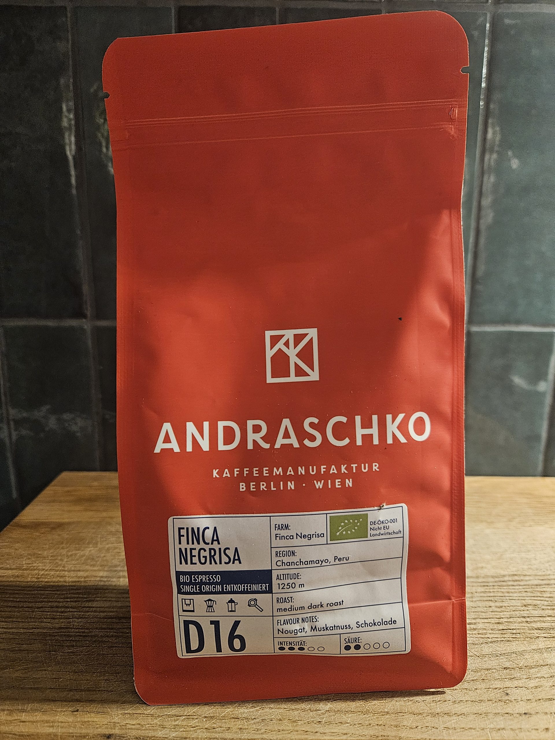 Ein toller entkoffeinierter Espresso mit einem Geschmack wie Samt. Diesen Single Origin (übrigens eine echte Rarität im Decaf Angebot) läßt Andraschko sich gut bezahlen – ist allerdings jeden Schluck wert.