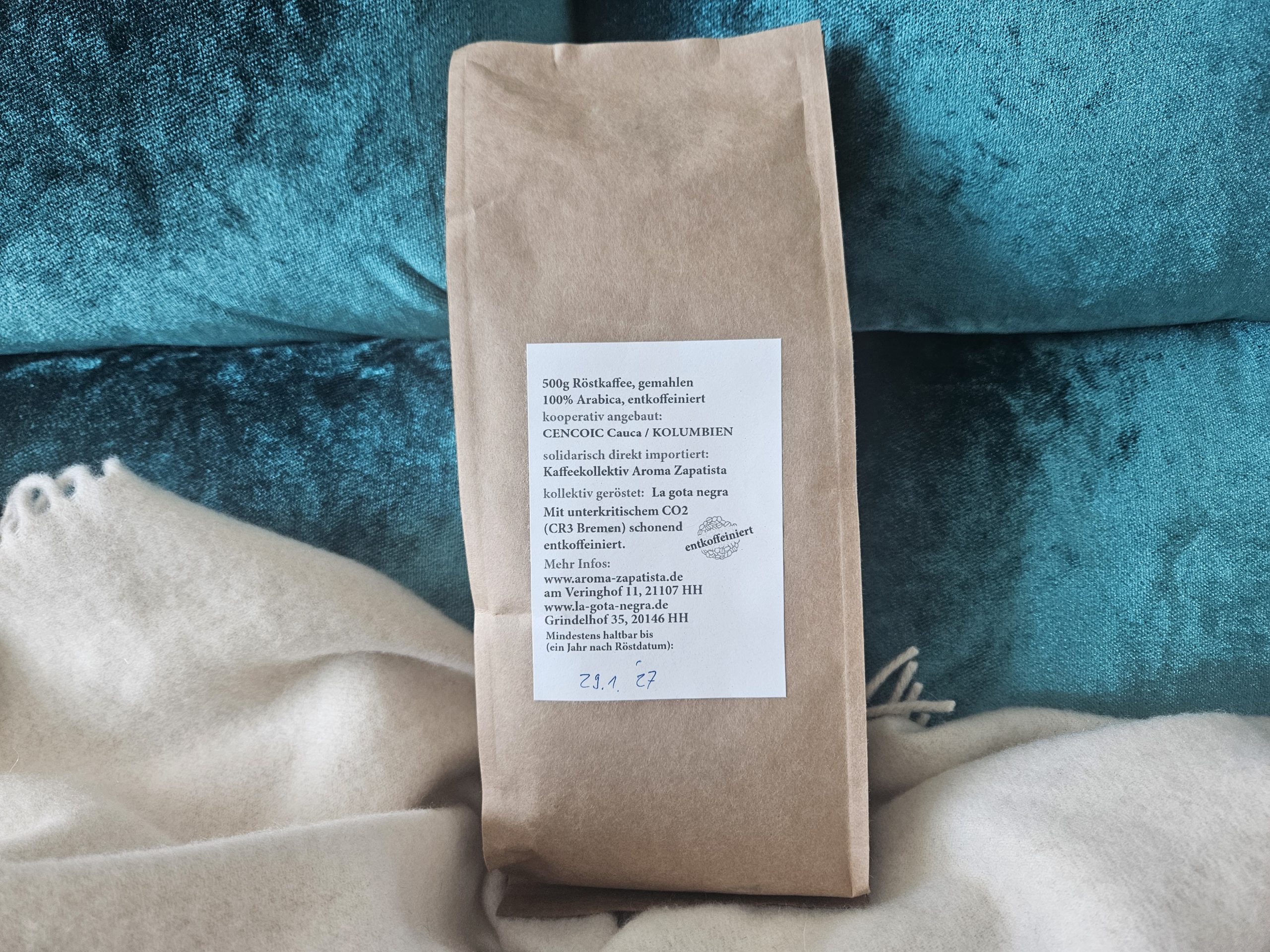 Hier kommt viel gutes zusammen: Ein Decaf wie Seide mit hohem Anspruch: solidarisch gehandelter Kaffee einer Frauenkooperative in Kolumbien. Die Website ist vollgepackt mit wertvollen Informationen. Den Kaffee ordentlich dosieren!